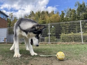 ティナちゃんのために買ってもらった新しいボールをもらってとっても嬉しそうです![]()